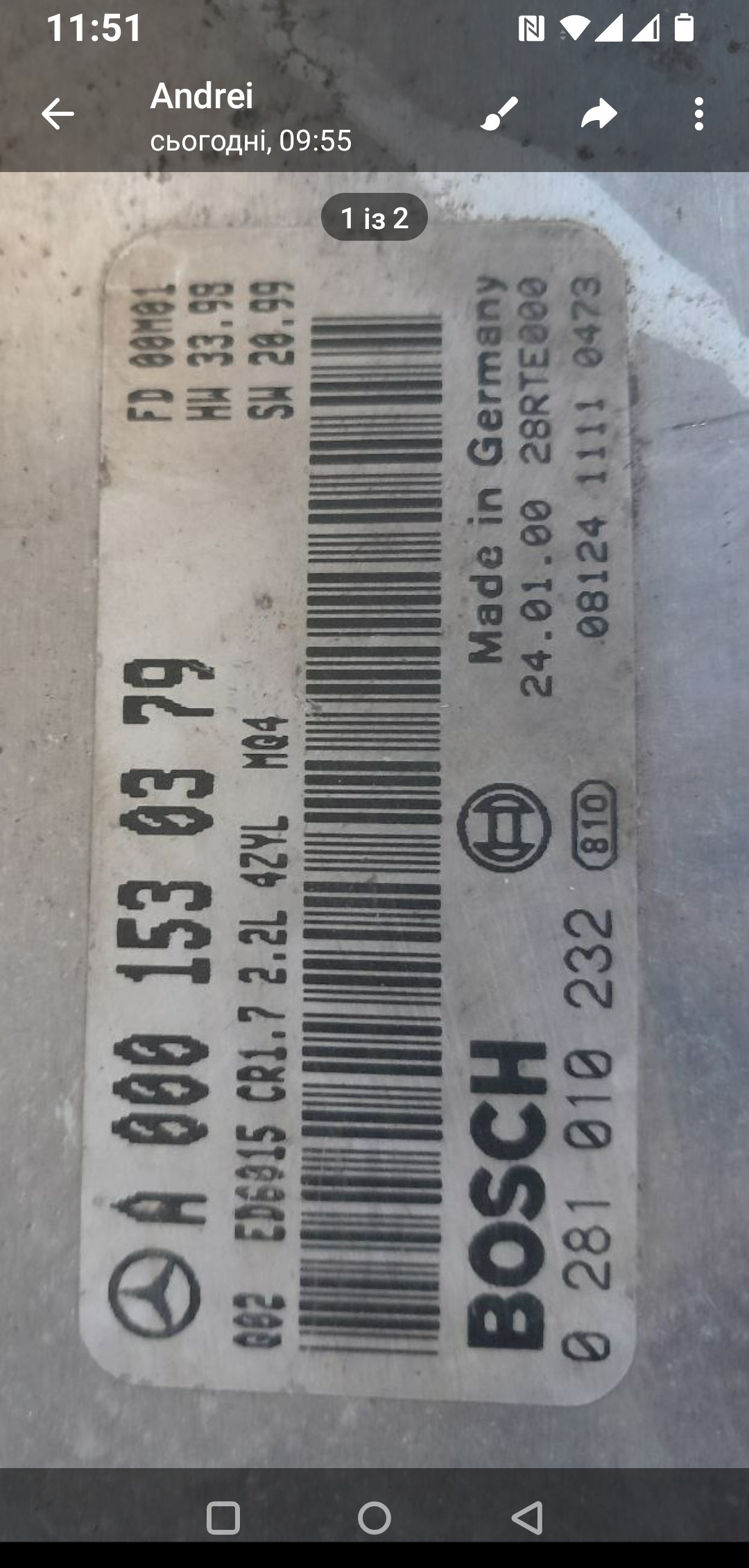 Відправте форму запиту, вказавши в ній назву запчастини Бортовий компьютер та її код - А 000 153 03 79, інформацію про ваш автомобіль та контактні дані