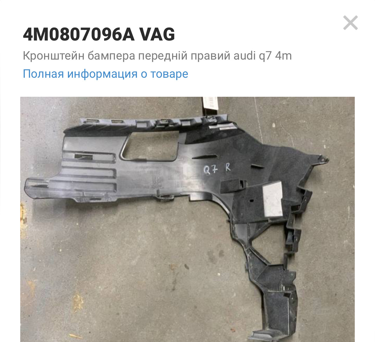 * Хотите купить кронштейн бампера 4M0807096A? Отправьте запрос на эту запчасть и получите ответы с ценой от продавцов со всей Украины.