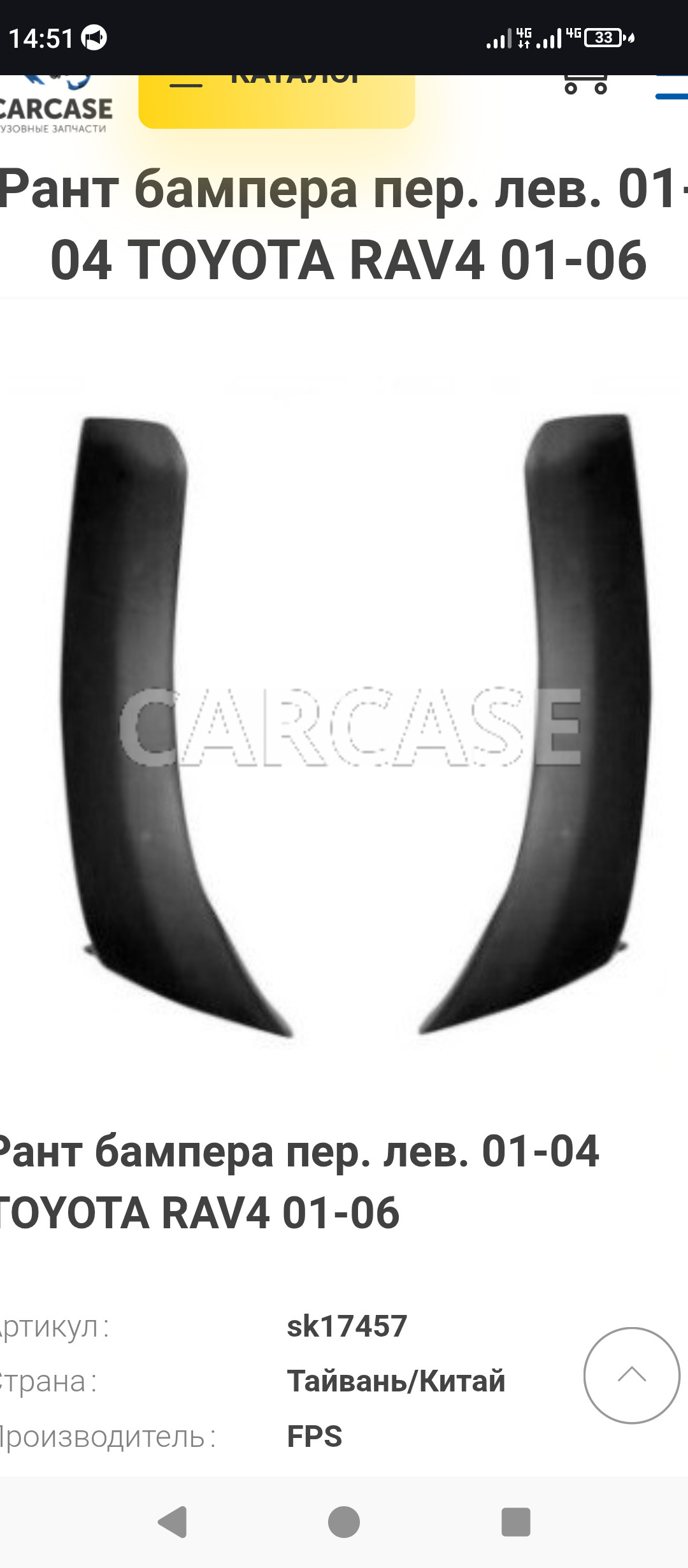Как купить рант бампера Toyota RAV4 универсал 2005 г. 2.0 л бензин на Запчасть.com.ua